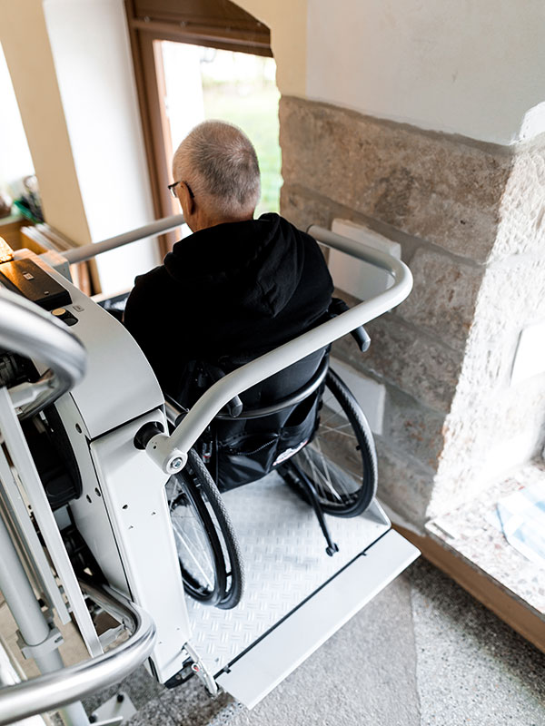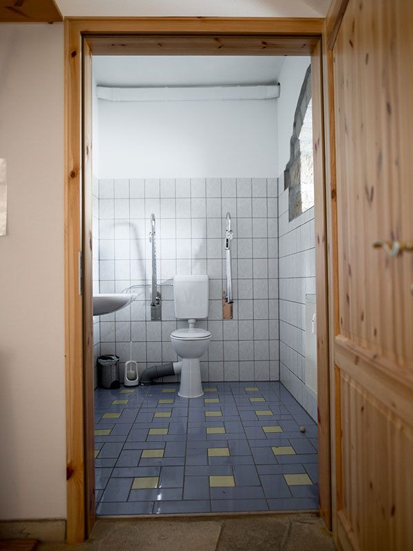 Die Räume im Erdgeschoss sind mit Rollstuhl gut zu erreichen. Vor dem Saal befindet sich eine barrierefreie Toilette. In die erste Etage gelangen Rollstuhlfahrer mit einem Plattformlift. Hofladen und Plattformlift sind über eine Rampe erreichbar.
