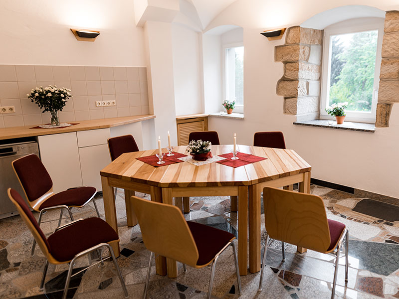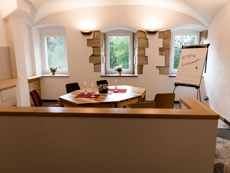 Soll während ihrer Veranstaltung eine Gruppenarbeit integriert werden oder benötigen Sie einen Ort, an dem in Ruhe unter vier Augen gesprochen werden kann? Dann nutzen Sie gern unseren Seminarraum. Dieser ist einladend hell und mit einer zusätzlichen Küchenzeile ausgestattet. Sie können den Raum auch separat für eine Sitzung mit bis zu acht Personen buchen.