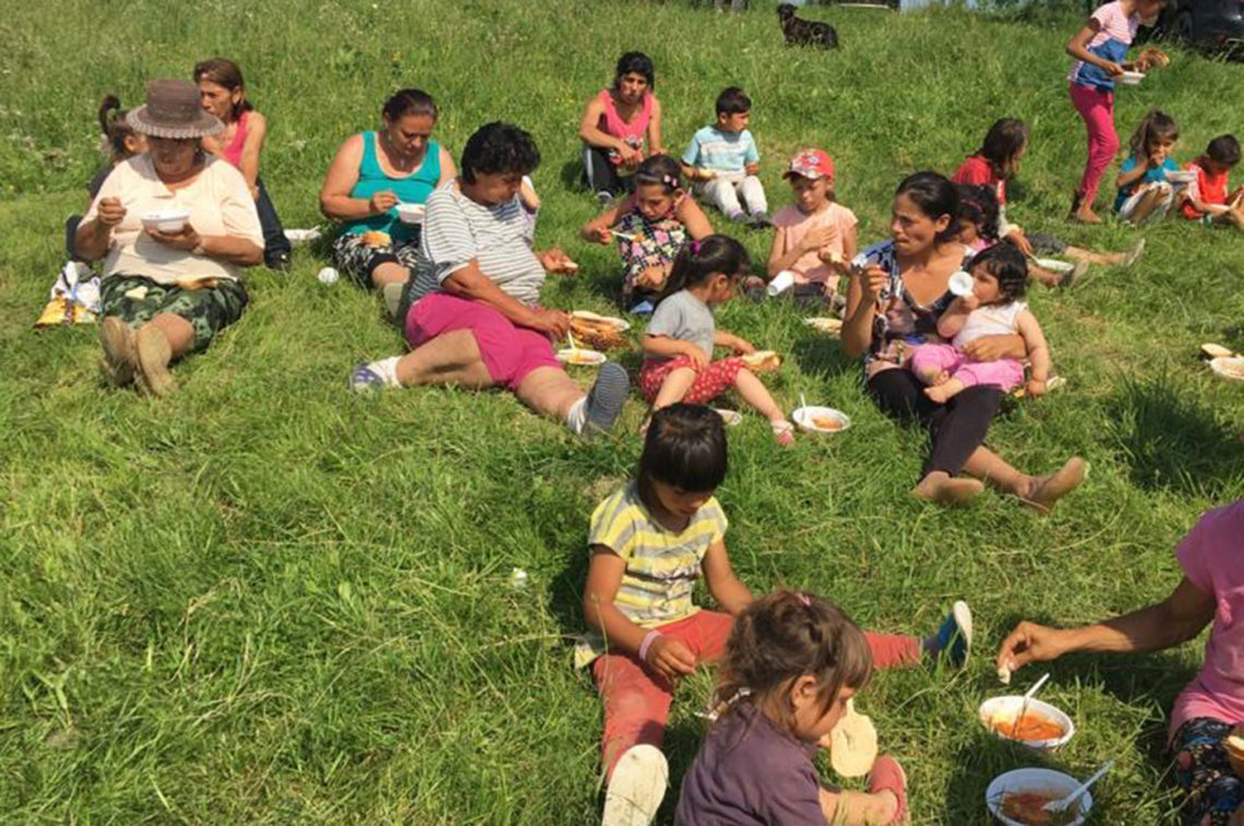 Einen wunderbaren Abschluss der Hungerhilfe gab es in Merceasa. Dort haben einige Gemeindeglieder aus Sacele die Familien zu einem gemeinsamen Mittagessen eingeladen. Die Frauen haben miteinander Kartoffeln geschält und einen kräftigen Eintopf zubereitet. Bei schönstem Wetter konnten alle gemeinsam auf der Wiese sitzen, gemeinsam essen und für ein paar Stunden den schweren Alltag vergessen. Und es hat noch viel mehr bewirkt: Das Gefühl, nicht vergessen zu sein, angesehen zu sein, ist für Viele ganz neu und gibt ihnen Hoffnung.